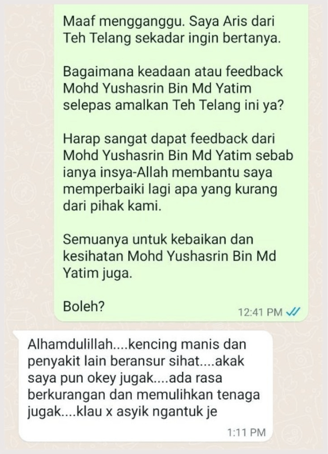 Badan kembali sihat. Mula boleh lakukan kerja harian dengan bertenaga tanpa rasa sakit